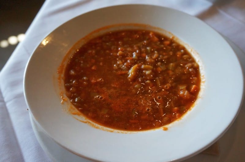 Lentil soup. This is a staple dish on their menu. It reminded me of my mother’s lentil soup. Comfort food just doesn’t come any better than this. Even in the summer, this would make a good lunch meal. It’s not too heavy and very filling. Served with crusty bread for dipping. Needless to say, I finished the entire thing.