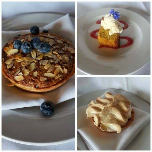 (Left: Blueberries and almond frangipane Top right: Gluten-free Orange and almond cake Bottom right: Lemon meringue pie)